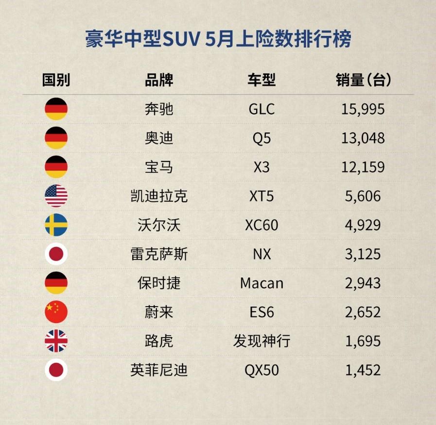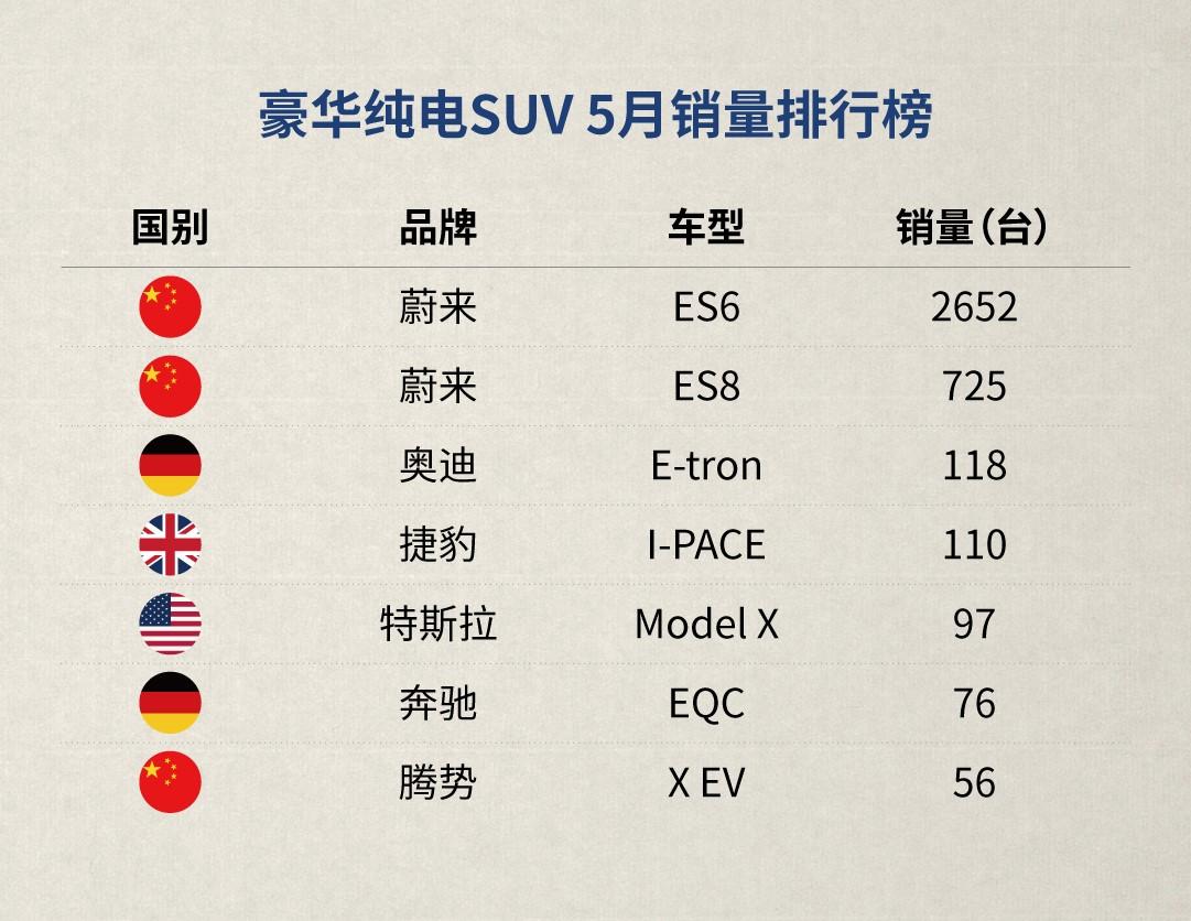 蔚来ES6五月上险数为2652台,稳居豪华中型SUV榜排名前十,排名第八。截至5月,ES6累计上险数已突破2万台,达20637台。